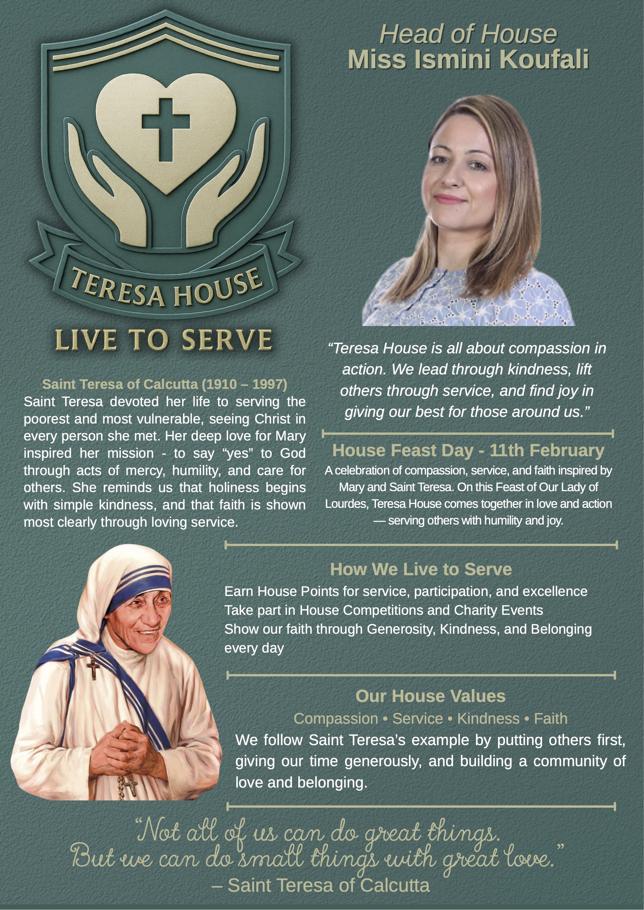 Patron Saint: St Teresa of Calcutta (Mother Teresa)