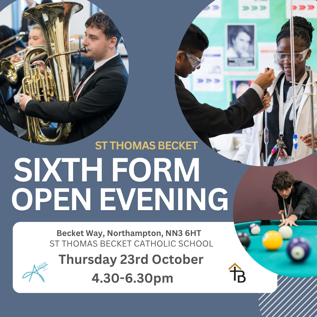 Please book a place at our upcoming Open Evening: Sixth Form Open Evening 2025 Tickets, St Thomas Becket Catholic Secondary School, Northampton | TryBooking United Kingdom